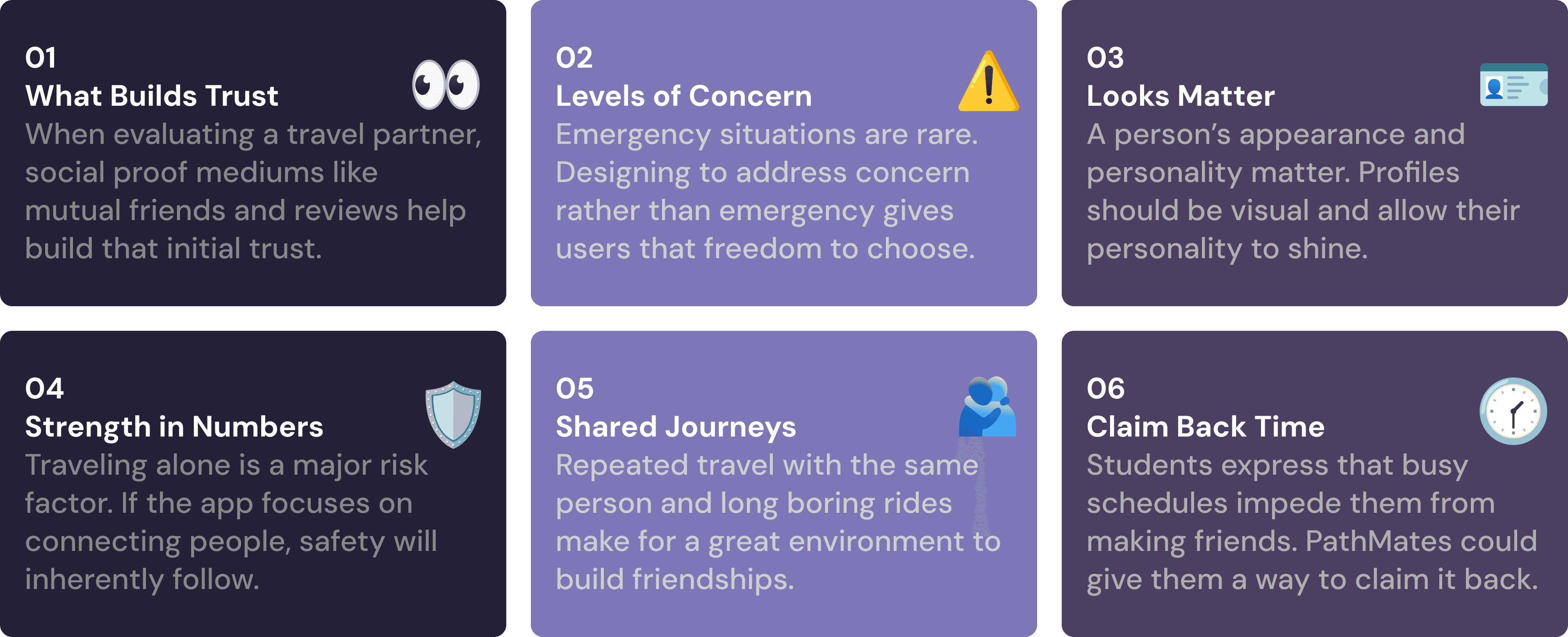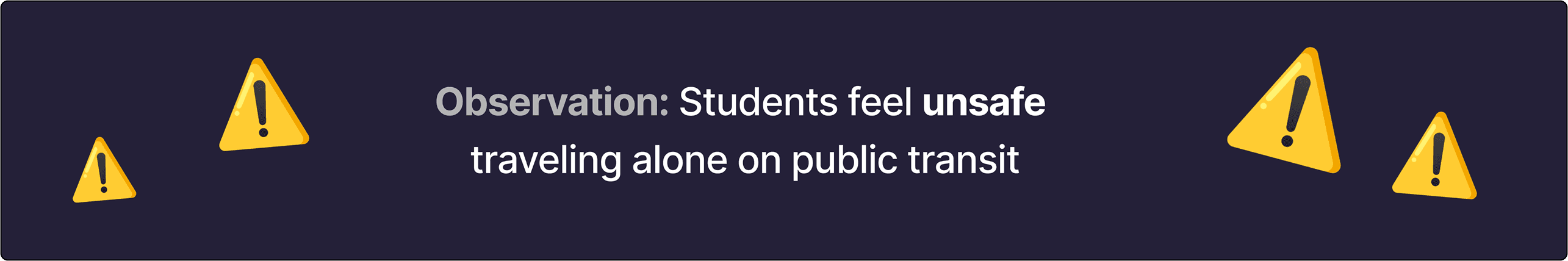 I conducted 7 user interviews to understand current thoughts, feelings, and experiences in regards to safety when commuting via transit. Here's what I found.