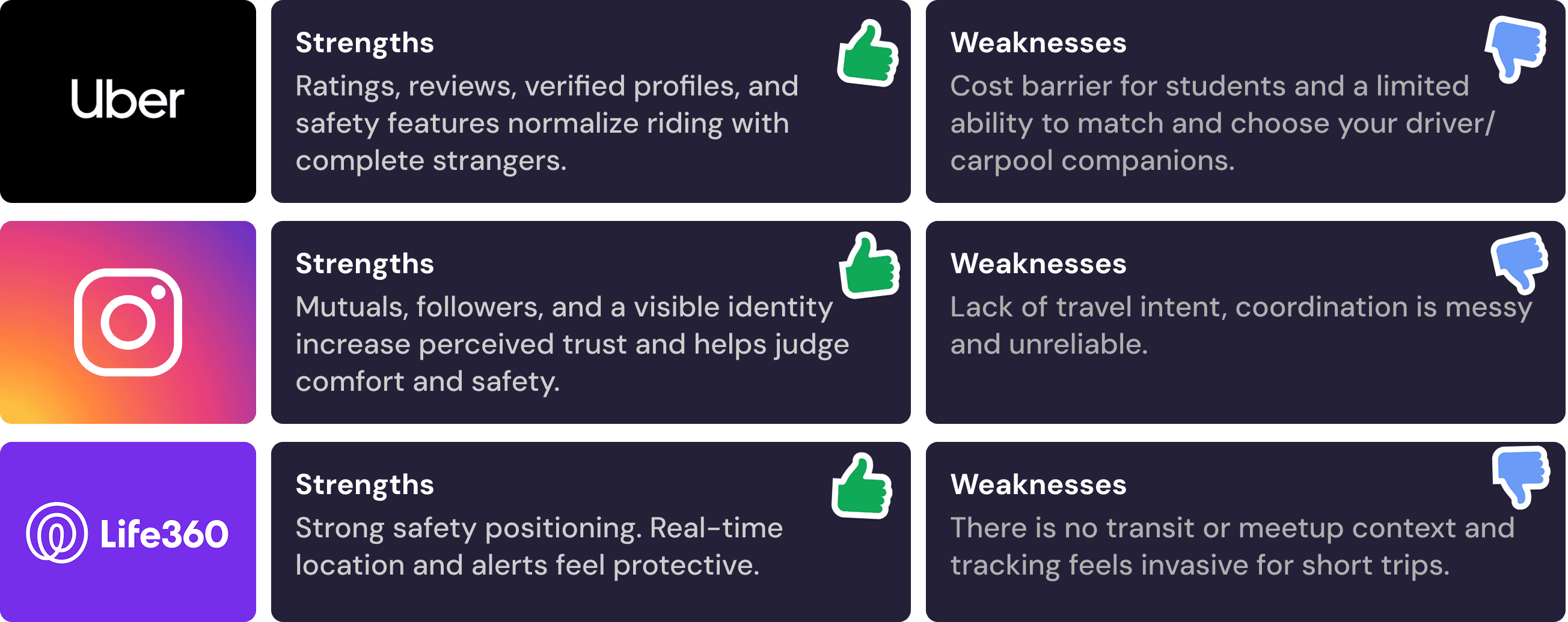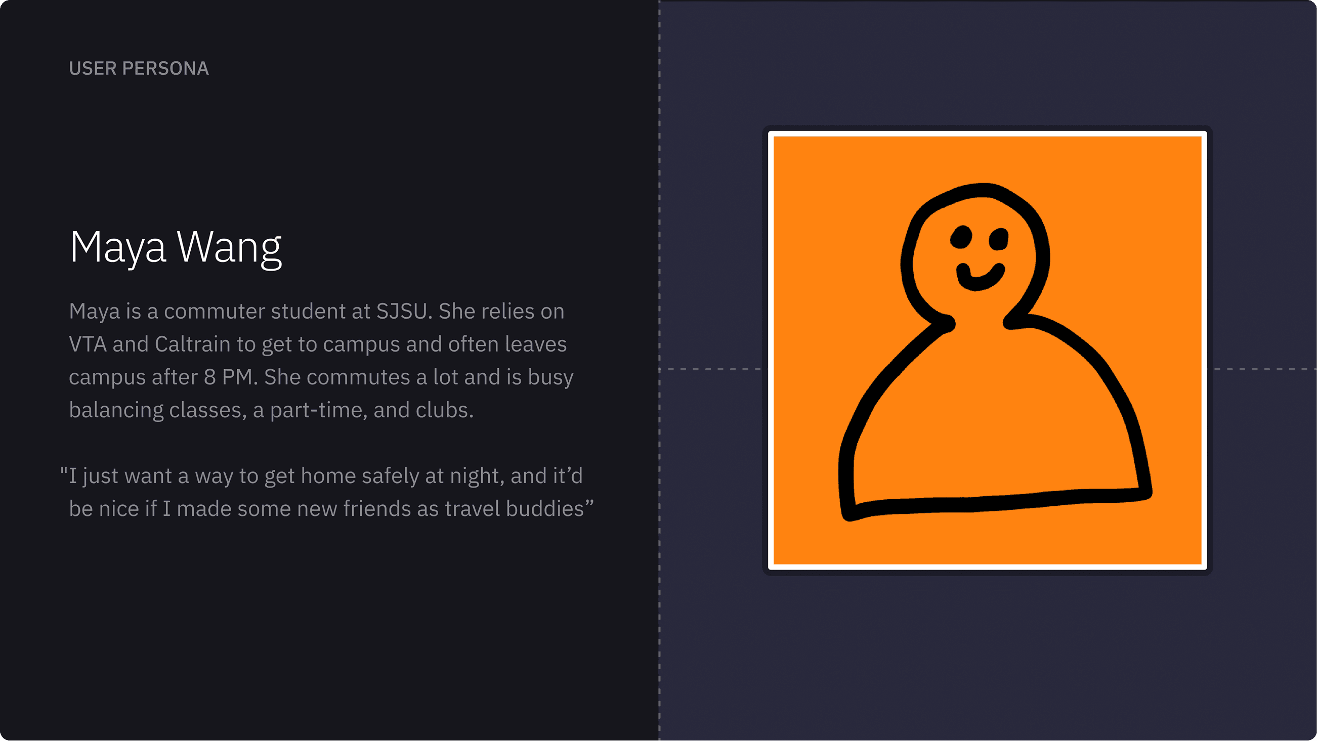 This sparked a vision: a platform designed to facilitate "transit-pooling," enabling students to commute together for enhanced safety and social connection.