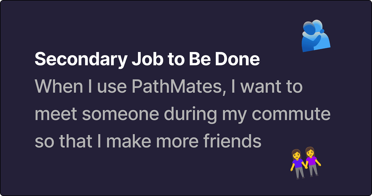 To move beyond surface level pain points, I framed what users would really try to achieve using PathMates through Jobs to Be Done.