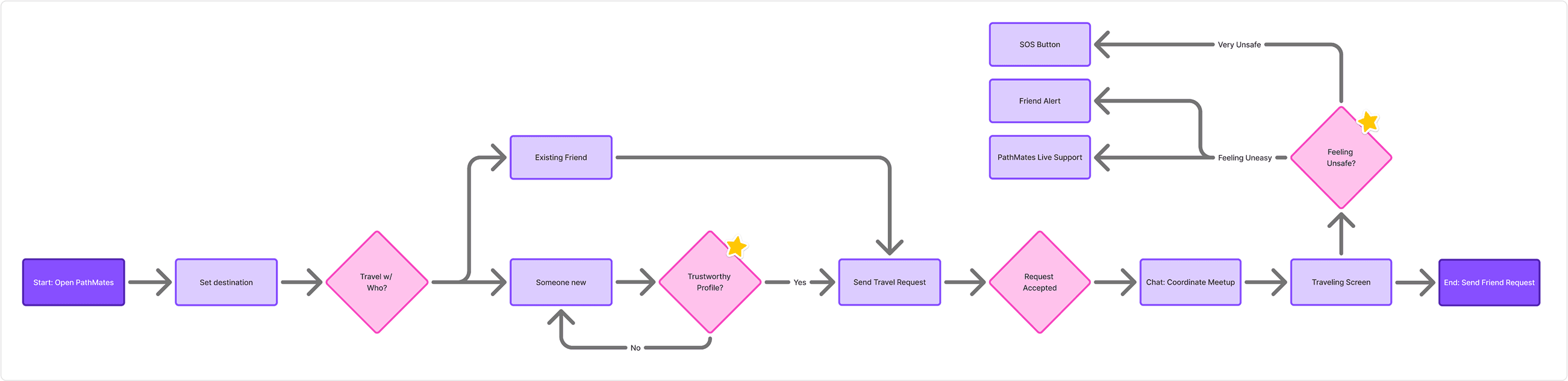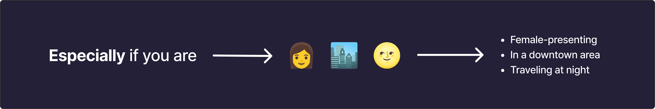 For the full flow, imagine you're a student who got out of a night class and just wants to get home safely. You're feeling unsafe and want to travel with someone.